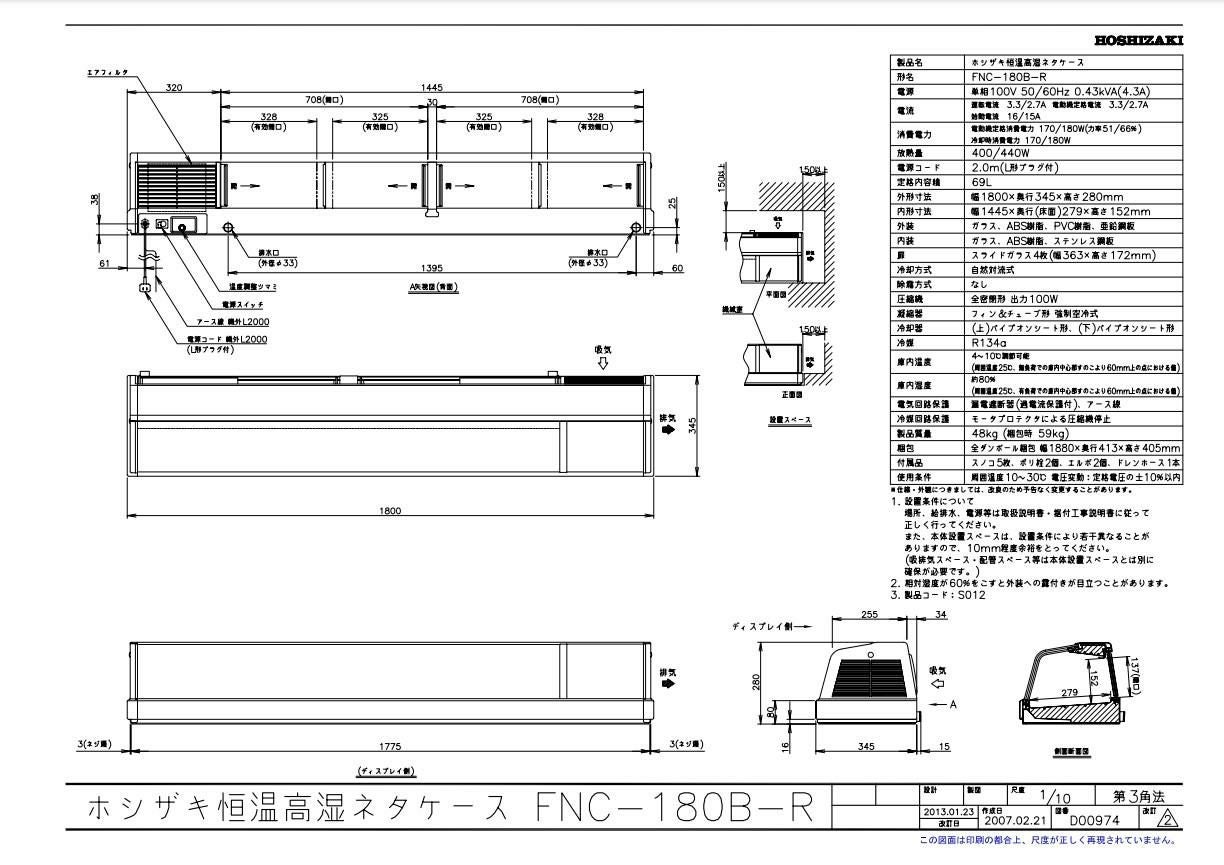 商品名:恒温高湿ネタケース FNC-180C-R 幅1800×奥行345×高さ280(mm) 単相100