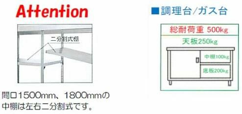 間口1500、1800の中棚は左右二分割式棚です。