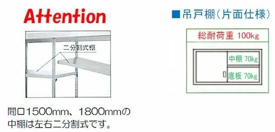 間口1500、1800の中棚は左右二分割式棚です。