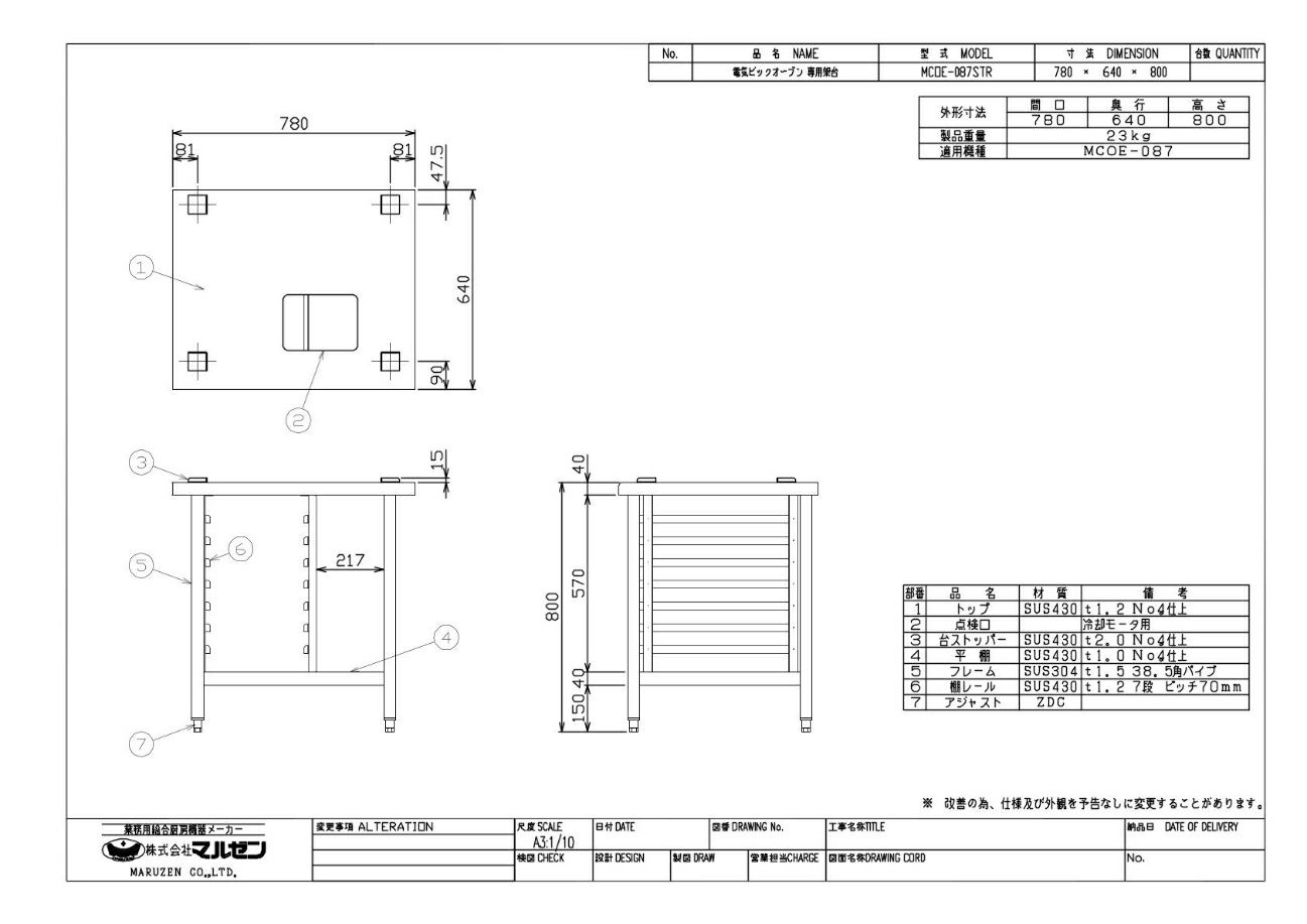 【マルゼン】コンベクションオーブン専用架台 MCOE-087STR 幅780×奥行640×高さ800