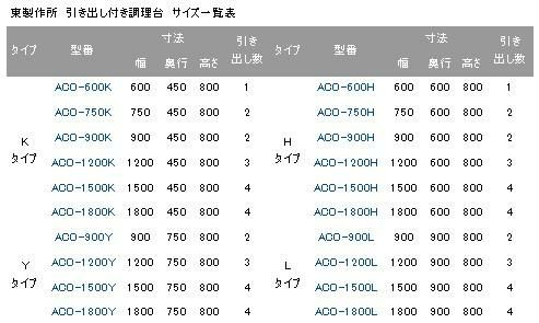 【東製作所】引き出し付き調理台 ACO-900Y 幅900×奥行750×高さ800mm